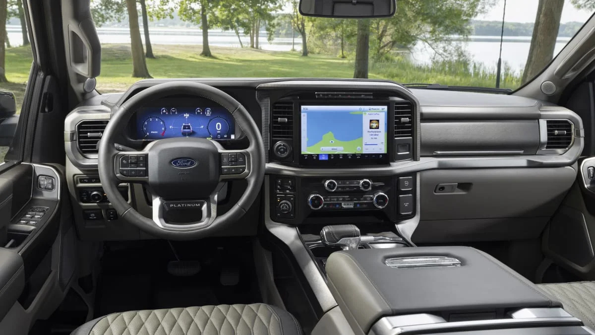 Some of the F-150’s biggest changes for 2024 come inside the pickup where the whole color palette throughout the various trim levels and tech setup is new. From XLT to Platinum, the interior goes from perfectly acceptable to downright lavish. That said, we still prefer the luxurious design seen in the Ram 1500 and GMC Sierra top trims over the F-150.